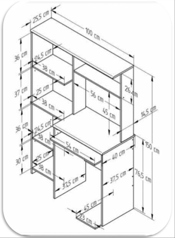 Mueble para computador de mesa o portatil, incluye biblioteca para mejorar la organización de los espacios y proporcionar un ámbiente cómodo y ameno para el trabajo en la oficina o en el hogar.