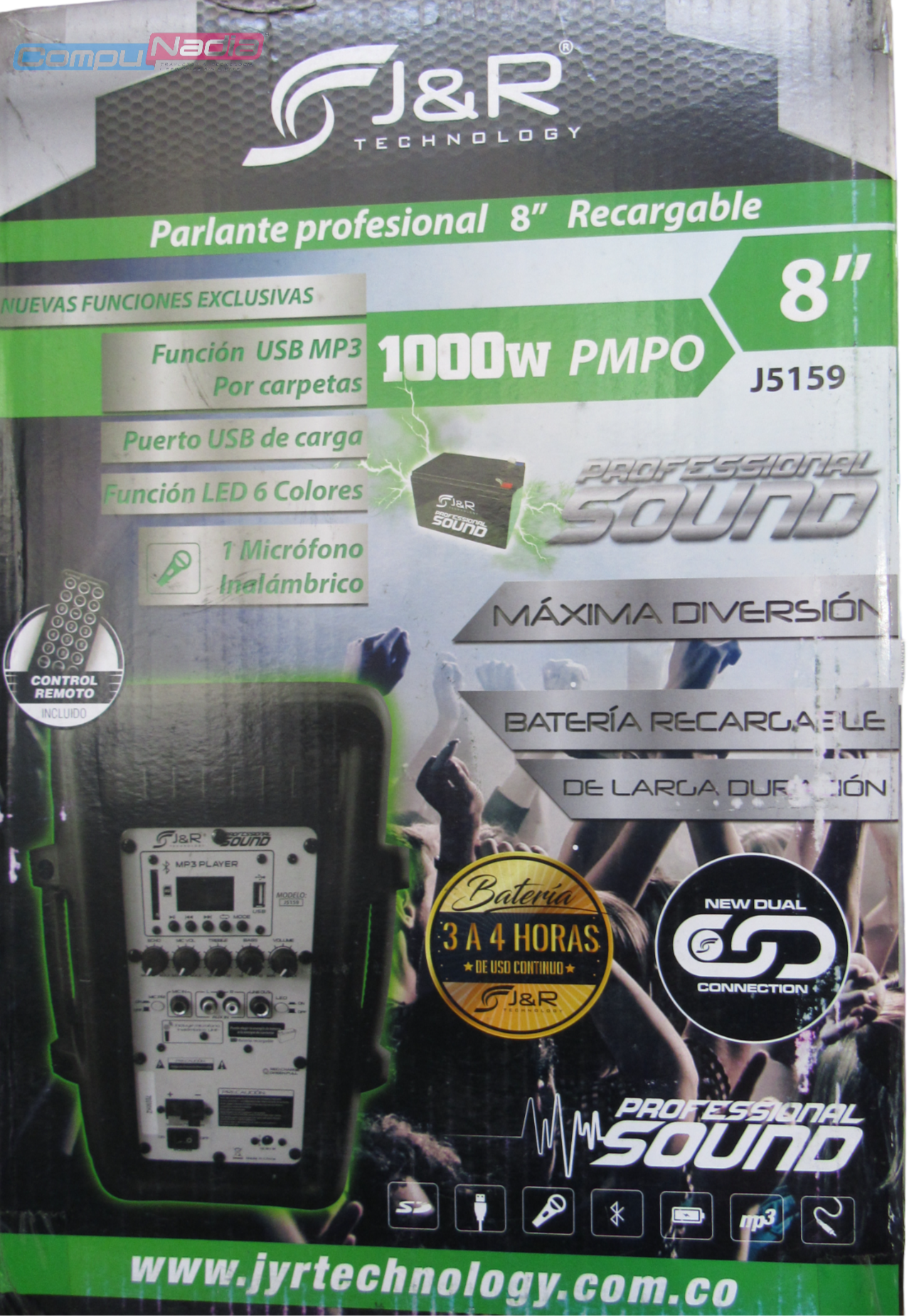 Parlante profesional 8" recargable 1000W